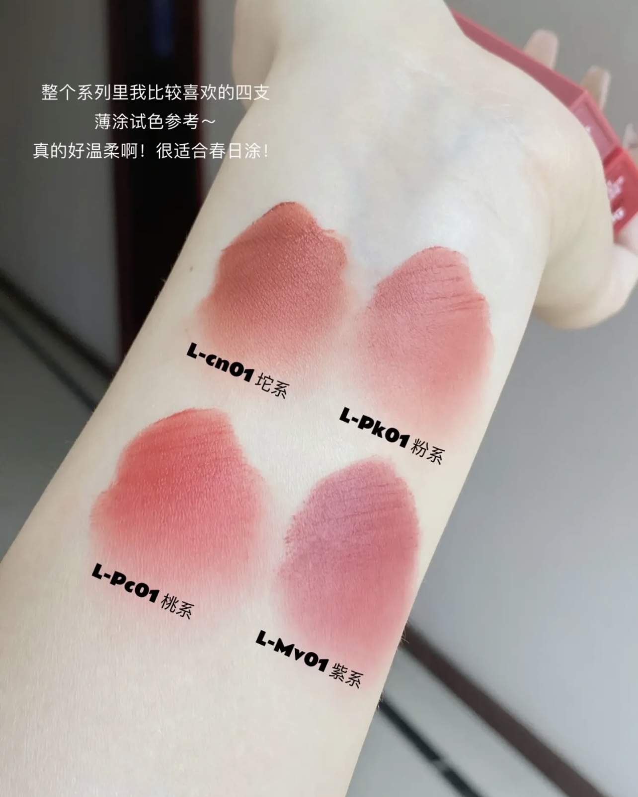 比女主角和空氣唇泥系列更輕薄 第一次擦到這種質地的唇釉 有點驚喜🌈 質地介於唇泥和唇釉之間 完全不拔乾卡唇紋