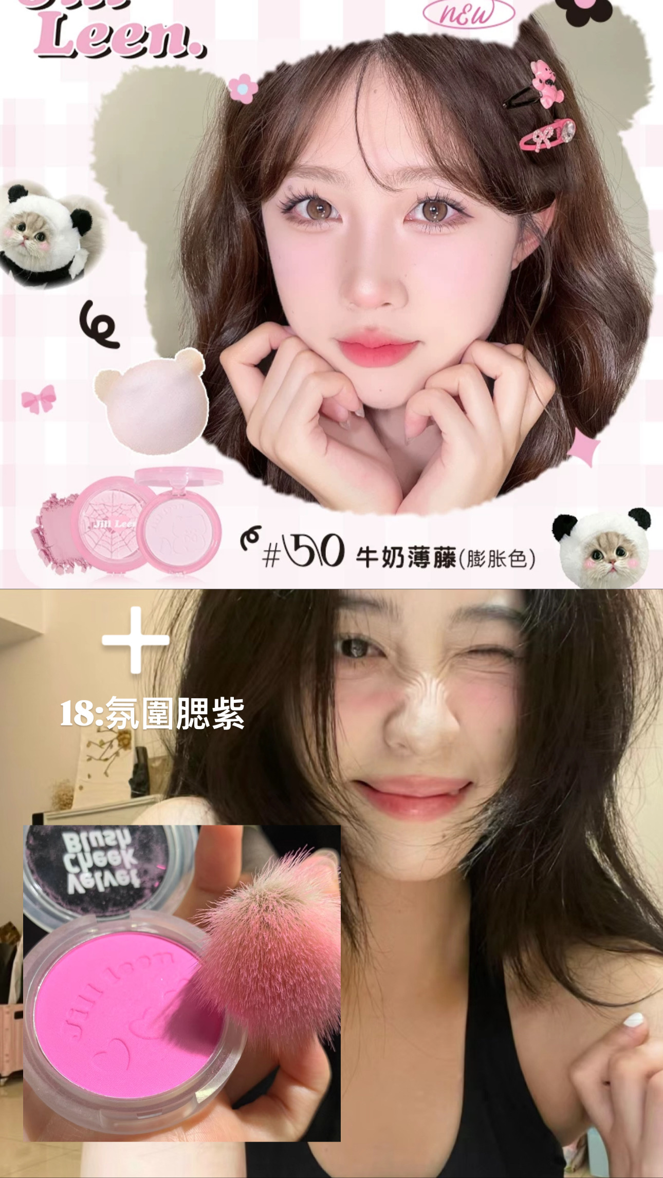 1.氛圍感嫩妹蓬蓬臉組合:50牛奶薄藤嫩牛奶粉(膨脹色)+18氛圍腮紫(氛圍色)